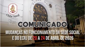 Clube Naval - Sede Social Sede Esportiva (DECN) Sede Náutica (DNCN) Últimas notícias Agência Marinha de Notícias Comunicado - Fechamento da Sede social a do ECRJ nos dias 20 e 24 de abril de 2026 Relatório de Igualdade Salarial do Clube Naval Veja mais Comunicados da Presidência Comissão Interclubes Militares - Honra que não se abate Eventos e atividades realizados no último trimestre em Nosso Clube Gestão transparente e busca por inovação. PUBLICAÇÕES Boletim Imagem Boletim - Abril 2026 Edições anteriores Revista Imagem OUT/ NOV/ DEZ 2025 Edições anteriores Círculo literário Imagem Marenostrum nº 110 Edições anteriores